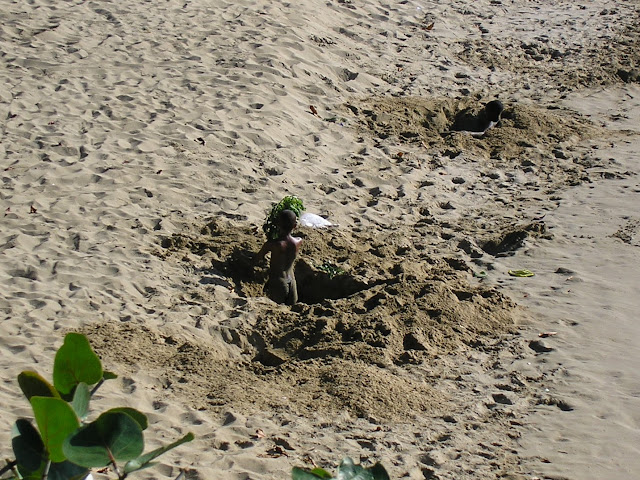 Tänäänkään ei ollut snorklaussää. Aallokko oli sen verran kovaa. Tyrskyjä oli kuitenkin mukava seurata rannalta käsin. Rannoilla on jonkin verran kaupustelijoita, mutta ei kuitenkaan riesaksi asti. Paratiisimainen paikka palmuineen, hiekkoineen ja kaikkineen. Rannalta tuli tänään ostettua kotiin tuliaisia. Omalla rannallla näimme rapuja ja pieniä spiraalikotiloita. Rauno sai yhden spiraalikotilon, jonka sisältä kömpi esiin rapu ja läksi liikkeelle, Raunon otettua se käteen. Aika hienoo. Kaikenmaailman ökkiäisiä sitä onkin olemassa ja saa vielä nähdä livenä!