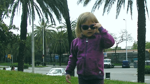 Tänään oli matkustuspäivä. Syötiin pilotissa ihan ok aamiainen ja lähdettiin sitten pienen ulkoilun jälkeen hotellin kyydillä lentoasemalle. Lento lähti 13.20. Ehdittiin asemalla syödä jäätelöt, jo toiset reissun aikana, ja hörpätä juomista. Sarah löysi kentältä leikkipaikan sopivasti ennen lähtöä. Sarah oli reipas ja kiltti tyttö kentällä. Päästiin koneeseen ja otettiin molemmat päikkärit. Lentoaika oli noin 4 h. Saavuimme Barcelonaan! Oltiin jo vähän väsyneitä. Etsittiin kentältä meidän matkarattaat ja sen jälkeen kyyti hotellille. Menimme linja-autolla keskustaan ja sieltä loppumatkan taksilla, joka maksoi vain 10€. Sarah vähän itki äitiä. Huh, päästiin huoneeseen. Hyvä ja hieno hotelli. Sarahin mielestä oli hienot punaiset seinät ja hieno kylpyamme. Lähdimme vielä illalla etsimään kauppaa ja jätskiä. Molemmat löytyi pienen kiertelyn jälkeen ja niin syötiin jätskit palmun alla. Hotellin lähialue näytti viihtyisältä. Enää oli ohjelmassa vain yöunet jäljellä.