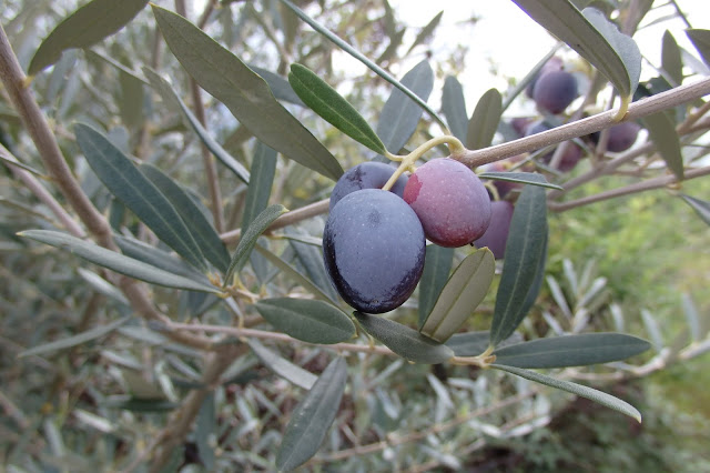 Sää oli tänään puolipilvinen ja lämmin. Päätimme olla koko päivän Prossedissa ja lähteä pitkälle maaseutukävelylle eväiden kera. Maisemathan oli upeita, kuten jo aiemmin on hehkutettu. Kävelimme ns.alatietä ja takaisin lenkin ns. ylätietä. Matka alkoi jyrkällä alamäellä (paikkaa ei voi suositella liikuntaesteisille, mutta toisaalta ei kyllä voi Roomaakaan ja näin ollen olettaen Italiaa yipäätään). Kävellessä Netta ja Niina kuvailivat perhosia ja näimme kello kaulassa oliivipuiden seassa laiduntavia kevosia, viinimarjapensaan kokoisen rosmariinipensaan sekä upeita vanhoja tammia. Siinä matkan kääntyessä jyrkästä alamäestä yhtä jyrkäksi ylämäeksi Netta ja Rauno olivat oliivisotaa. Oliiveita kasvoi laakson joka kolkassa ja ne olivat pullollaan raakoja oliiveja. Jotenkin mieltä rauhoittava näky!