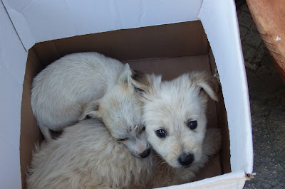 Niin sanottu kotipäivä Prossedissa. Aamu meni nopeasti kämpillä, vaikka lentsu vaivasikin vuorostaan Raunoa. Rauno lähti Sarahin kanssa puolilta päivin pikkukävelylle ja leikkikseen. Sää oli upea n.25 astetta. Siinä kävellessä tuli nähtyä vanhassa rakennuksessa viinitynnyreitä. Täällä siis tehdään viiniä. Viinistä puheen ollen parhaaksi viiniksi reissussa ovat osoittautuneet ns. pahvitölkkiviinit (1,75€/l). Takaisin kämpille päästyään Rauno ja Sarah herättivät Netan ja ottivat koko porukan mukaan toiselle kävelylle. Tällä kertaa maaseudulle. Alkumatkasta vastaan tuli eläinpelastustehtävä, kun kaksi pientä koiranpentua piilotteli tien laitaan pysäköidyn auton alla. Saimme pennut houkuteltua pois auton alta. Toiset pienet oli ihan peloissaan ja nälissään, selvästi hylättyjä pentuja. Hetken mietittyämme mitä pennuilla tekisimme, keksimme kysyä neuvoa läheisestä kantakahvilastamme. Kahvilan täti (joka ei koko aikana ollut osannut puhua englantia) otti pennut avosylin vastaan ja rupesi lepertelemään englanniksi. Täti otti pennut kotiinsa asumaan oman pentunsa kaveriksi. Muutamaa päivää myöhemmin nainen näytti meille puhelimesta kuvia pennuista kotonaan. Tulipa hyvä mieli, kun voimme auttaa pentuja noin ja niitten tarinalla oli onnellinen loppu. Jatkoimme kävelyä pitkin maalaimaisemia ja näimme mm paimenkoiran työssä lampaita vahtimassa, vuohia ja puhveleita, joitten maidosta tehdään aitoa ihanaa mozzarellaa. Aikamoisessa kuravellissä nämä puhvelit asustelivat, mutta tyytyväisiltä vaikuttivat, kun tulivat uteliaina tutustumaan meihin aitauksen laidalle. Ilta tuli äkkiä ja kämpillä oli Niinan vuoro kokata. Vuorossa oli oliivimykyjä ja pastaa.