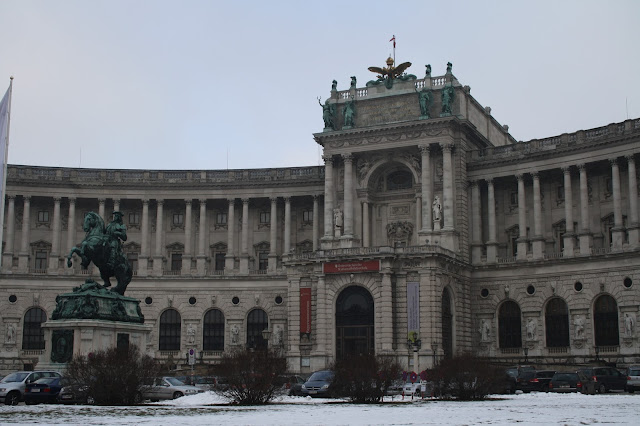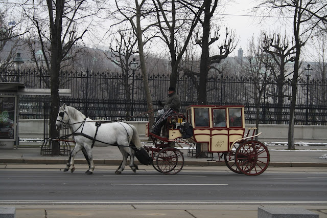 Tänään päätimme käydä museoissa, Sissimuseo esitteli astioita, joita hovissa oli käytetty keisarinna Sissin valtakaudella. Niitä oli valtavasti. Astioista henki historian havina ja arvokkuus, mutta olisi ollut mukava nähdä muutakin valtakauteen liittyvää esineistöä. Ilmeisesti esineistö olisi ollut esillä linnassa, jossa Sissi aikoinaan asui, mutta sinne emme tällä reissulla ehdi. Pitänee yrittää päästä Wieniin joskus uudemman kerran. Museon edestä olisi lähtenyt vossikka-ajeluita kauniine uusvanhoine vaunuineen, mutta emme hennoneet käyttää aikaa niillä ajeluun, vaan tyydyimme katselemaan komeita hepoja ja hyvin pukeutuneita ajureita. Luonnonhistoriallisessa museossa näimme dinosaurusten fossiileja ja paljon täytettyjä eläimiä. Rakennus oli uskomaton sisältä. Harmi kun siellä ei saanut kuvata.