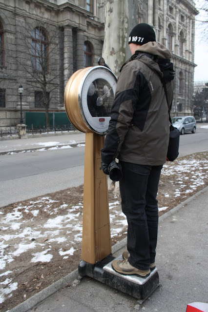 Kävellessä vielä ulkona huomasimme, että meitä oli huojattu eilen Raunon nahkatakkia ostaessa. Pitkän tinkimisen jälkeen takin hinta laski ostotilanteessa 249€:sta 240€. Tänään kuitenkin kävellessämme liikkeen ohi, oli sama takki myynnissä alessa 199€. Voi kikkare! No, mieli parani pian, kun löysimme katukuvasta hauskat kolikoilla toimivat henkilövaa’at, joilla pääsimme leikkimään.