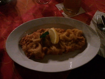 Siitä sitten siirryimme katselemaan muita Wienin mahtavia arkkitehtuurisia saavutuksia, joita ei oikein voi edes uskoa ihmisten rakentamiksi. Söimme välipalaa itävaltalaistyyppisessä ravintolassa ja otimme paljon kuvia kaupungin vanhoista kauniista rakennuksista. Päivän aikana huomasimme kauppojen hintatason olevan hyvinkin edullinen. Päivän tärkein hankinta oli nahkatakki, jonka ostin Raunolle 30 – vuotis lahjaksi. Rauno sai valita takkinsa itse ja vaikutti oikein tyytyväiseltä lahjaansa. Kotiin vietäväksi ostimme mozartin kuulia. saa nähdä onko niistä enää mitään jäljellä kotiin päästyämme, kun näin alkumatkasta ostimme herkkuja. Illalla juhlimme vielä Raunon huomisia syntymäpäiviä, sillä kaikkia suuria juhliahan juhlitaan aina aattona. Söimme päivällisen n. 400 vuotta vanhassa kellariravintolassa. Täällä saimme ensimmäistä kertaa matkoillamme maistella juomia niitä tilatessamme. Eli siis olimme oikeassa ravintolassa, hyvä, hyvä. Ruoka oli hyvää. Söin sipulipihviä leipäduplingilla ja Rauno wieninleikettä talon perunasalaatilla. Sekä leipädupling, että wieninleike ovat paikallisia erikoisuuksia, joskin jälkimmäinen niistä on rantautunut possu versiona euroopan ravintoloihin. Molemmat todella herkullisia, eikä vastaavia ole saanut missään muualla!