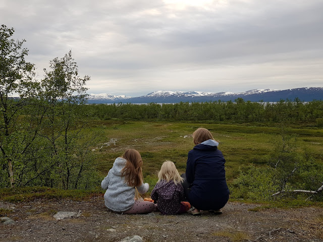6.7.2019 Tänään alkoi kotimatka. Aamulla laitettiin teltta taas kasaan. Tällä kertaa hyvin rivakkaan, kun sade uhkasi alkaa juuri aamiaisen jälkeen. On ollut niin mukava kokkailla ruokaa strangella, syödä ulkona ja juoda kuksasta! Ihan paras tapa elää! Vuoristoilmakin on tehnyt tehtävänsä. Mukavasti on alkanut iltaa kohti raukaista ja haukottaa itse kutakin. Tosin silti ollaan käyty joka ilta nukkumaan lähempänä puolta yötä. Eilenkin alettiin vasta kympin maita paistamaan lettuja. Tytöt ei oo muistanu puhelimia juuri ollenkaan. Autossa on raikanut hevisaurus aamusta iltaan, jokaiselta stopilta on löytynyt jotain kivaa katseltavaa, löydettävää tai puuhaa ja illalla Oulusta ostettu uusi pallo on ollut mitä mainiointa viihdettä. Autoillessa on myös nähty vaikka mitä nelijalkaisia. Tienlaidoilla on laiduntanut heppoja, lampaita ja lehmiä ja auton edestä tien ovat ylittäneet ainakin metsoherra (hyvin läheltä tuulilasia), lumikko, kettuvauva ja saukko. Niin ja nähtiinhän me Ruotsissa se yksi porokin. Näitä on ollut kiva bongailla yhdessä.