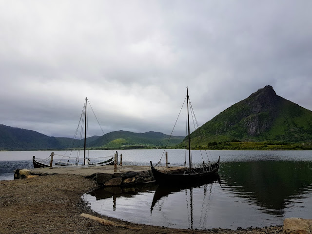 Aamupalan jälkeen suuntasimme kohti Lofotr viikinkimuseota. Sää oli pilvinen ja tuulinen, mutta onneksi ei satanut. Lippu museoon aikuiselle maksoi 200 norjan kruunua ja lapselle 150. Savanna pääsi ihan ilmaiseksi. Näimme museossa viikinkien käyttämiä työkaluja, koruja ja vaatteita. Museo koostui kahdesta isommasta rakennuksesta ja muista pienistä jutuista ulkona. Aktiviteetteina oli mm. viikinkien aikaisten pelien pelaamista, jousiammuntaa ja talutusratsastusta lapsille. Savanna pääsi ensimmäistä kertaa hevosen selkään, mikä oli ihan mahtava juttu! Talutusratsastus sijaitsi rannalla, missä oli myös viikinkilaiva ja muita veneitä. Ulkona asusti myös söpöjä poneja, villisikoja, lampaita ja kanoja. Viikinkien aikaista kotieläimistöä siis. Museon kaupasta Niina sai itselleen ihanat mustikkakorvakorut, Sarah sai vihkon ja Savanna söpön pupupehmon. Museossa oli vanhan viikinkitalon muotoon rakennettu suuri asumus, ihan kuin ylösalaisin käännetty laiva, jonka sisällä oli esillä viikinkien aikaista elämää esittäviä huoneita ja tarvekaluja. Kaikki uutta tosin. Kahviorakennuksessa oli pieni museohuoneisto, joka kertoi viikinkien ajasta ja esitteli saarelta löydettyjä paikallisia viikinkiaikaisia arkeologisia löytöjä. Hienosti tehty kokoperheen paikka, jossa oli isommalla alalla paljon puuhaa ja tutkittavaa yhdessä lasten kanssa. Jos paikkaan olisi tullut yksin aikuisena, olisi se jättänyt kylmäksi. Sarahkin sanoi olevansa hieman pettynyt, kun museossa ei ollut paljonkaan aitoa, eikä yhtään hurjaa juttua. Täytynee joskus käydä Oslon viikinkimuseossa tutustumassa, jos meno olisi hurjempaa.