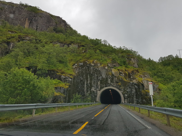 Tänään ajettiin vähän lyhyempi pätkä, sillä Norjan puolella sää oli ennusteen mukaan huomattavasti parempi kuin Ruotsissa. Ajelimme Slovaerista Narvikkiin yhdellä jätskistopilla. Narvikin ja Lofoottien välillä ovat tulleet tutuksi monet upean kamalat sillat ja tunnelit, joista pisin oli peräti 6,4km. Tytöt on ollu erityisen innoissaan tunneleista, joita on odotettu aina kovasti.