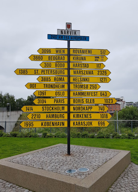 Pystytettyämme jälleen teltan (tällä kertaa käytännösä ruoholla naamioidulle kalliolle, johon tikut oli hyvin haastava saada kiinni) lähdimme tutustumaan itse Narvikkiin. Oikein sievä kaupunki, jossa oli paljon sotaan liittyviä muistomerkkejä. Kävimme syömässä pizzat italialaisessa ravintolassa ja tytöt saivat testata peräti kaksi leikkipuistoa, joista toinen oli kauniin kivikirkon kirkkomaalla. Kävimme ostamassa Raunolle tuliaisen ja kävelimme katuja kaikesta kauniista nauttien. Sarah on juuri oppinut lukemaan ja lueskeli vastaan tulevia kylttejä onnesta soikeana. Takaisin teltalle pelaamaan uunoa ja lueskelemaan kuka mitäkin. Pizzaakin jäi vielä iltapalaksi. Huomenna onkin sitten pitkä ajopäivä.
