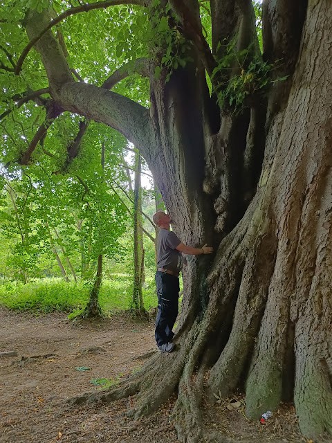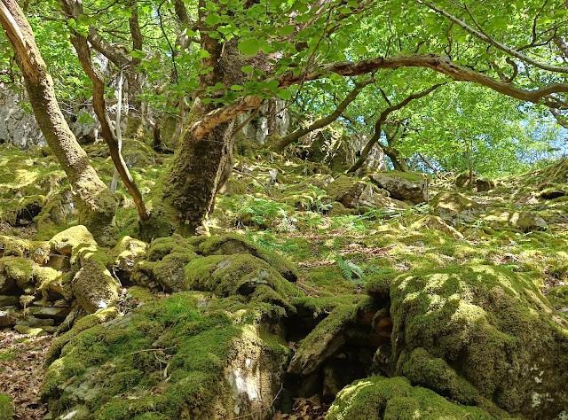 Tänään oli vuorossa Niinan oma päivä. Aamiaisen jälkeen repun pakkaus ja Rauno ajoi Niinan n. viidentoista mailin päähän paikkaan, josta läksi jalkapolku kohti Crimpiaun huippua. Alkumatkan reitti kulki kauniisti karttaa pitkin, mutta siinä vaiheessa, kun reitin olisi pitänyt lähteä nousemaan ylös, se alkoikin laskeutua alas. Ilmeisesti joku maanomistaja oli päättänyt, ettei hänen peltojensa yli tarvinnut kulkea ja suunnannut reitin toiselle julkiselle jalkapolulle. Pikaisen pohdinnan jälkeen Niina päätti, ettei huipulle nouseminen ollut itsessään niin tärkeää, vaan luonnossa liikkuminen ja uuden näkeminen ja kokeminen. Alas suuntaavia polkuja siis eteenpäin. Matkalla näki uskomatonta luontoa. Samalla n. 3,5 kestäneellä haikilla sai kävellä ensin vuoristopeltojen läpi, sitten sammaloituneessa satumetsässä, nousta rinnettä pellolle, jossa lampaat koputtelivat siltaa yli kuin tutussa tarinassa “kolme pukkia. Maisemat vaihtuivat lehtikuusimetsään, sitten valtavien tammien reunustamiin peltoihin, joiden lomassa oli keksi-tauon paikka. Metsät vaihtuivat joen rantaan, jota pitkin polku läksi kulkemaan. Olisi pitänyt laskea, monenko aidan ja portin yli polku kulki! Porttien ylitse oli tehty perinteisiä porrasylityksiä, joita oli mukava kulkea