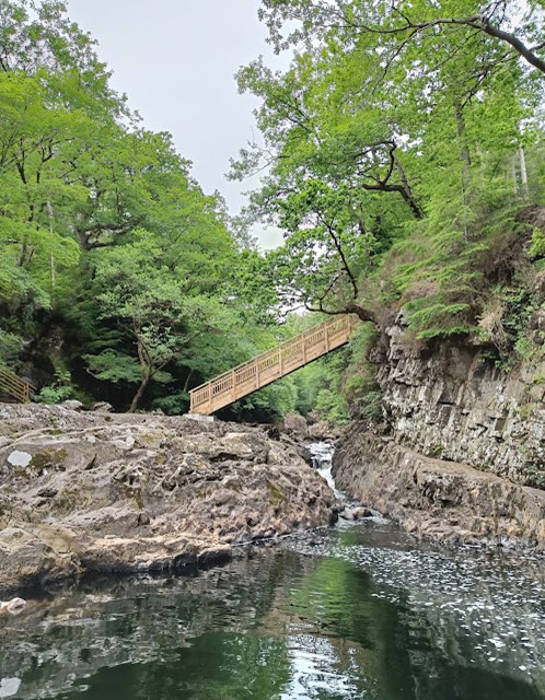 Tänään herättiin Snowdonian vuoristomaisemista. Iloksemme löysimme aamiaiselta viimein kuituja, tosin mitään tuoretta emme vieläkään saaneet. Isommissa kaupoissa on onneksi kunnon hevi osastot. Näytti tulevan hieno aurinkoinen päivä. Tänään jakaannuimme niin, että Rauno sai oman päivän, minkä viettää haluamallaan tavalla vuoristossa ja Niina olisi vahtivuorossa lasten kanssa. Rauno ajeli ja pysähteli kuvaamassa upeita maisemia ja haikkasi 4,5 mailia suurelle vesiputoukselle. Harmi kun tällaisia kuvatessa ei koskaan välity kuvassa kohteen koko, komeus ja kauneus niin kuin se luonnossa on. Kävellessä Rauno onnistui löytämään vanhan kivirinkulan rauniot (kuten Outlanderissa). Maaginen hetki. Päiväkahvilla törmäsimme hotellilla ja Rauno läksi riemuissaan reppu selässä jatkamaan luonnosta nauttimista.