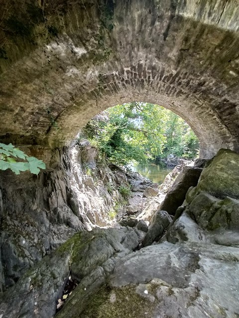 Polku johti yhteen kauneimmista paikoista, joissa oli koskaan saanut käydä! Joki laski puoliksi kuivuneessa uomassaan hiljalleen alaspäin välillä kivien välissä kuohuen. Jyrkät portaat laskeutuivat alas uomaan, jossa ei tiennyt mihin päin katsoa. Sitä ei vain voi kuvata sanoin, uskomaton paikka. Herättyään ihmetyksestä Niina päätti lähteä selvittämään missä oli ja kipusi toiset portaat ylös. Tie olikin jo lähellä ja sieltä sai ilmoitettua Raunolle sijainnin ja pyydettyä tämän ja lapset picnicille joen uomaan! Annlisa oli juuri nukahtanut, joten Niinalle jäi hyvin aikaa kävellä läheiseen kylään, jossa Raunokin oli aamulla pyörähtänyt autolla. Kamala turrepesä, mutta saipahan picnic -eväät ostettua. Matkamuistokaupasta tarttui mukaan vielä magneetti Walesin kansallislaulun sanoilla ja numerokyltti taloomme. Kolme vuotta sitä on oltu ostamassa ja Walesista asti sitä piti tulla hakemaan, mutta nyt se on olemassa=)