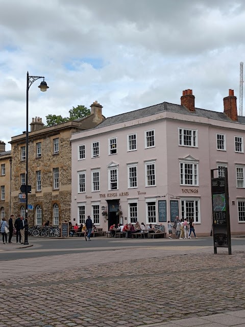 Jatkoimme seikkailua ohi muiden yliopistojen (joita Oxfordissa on kymmeniä) kohti näyttävää keskustaa. Tytöille tuli juuri sopivasti nälkä, joten päätimme ruokailla The Kings Arms -nimisessä pubissa, joka on yksi vanhimpia pubeja Oxfordissa. Pubit kilpailevat historioillaan, perustamis vuosillaan ja kuuluisilla asiakkaillaan. Tiettävästi The Kings Arms on ollut toiminnassa yli 400 -vuotta ja sen asiakaskuntaan on kuulunut yksi, jos toinenkin Oxfordin yliopistoa käynyt tunnettu hahmo. Nimekäs ja tunnelmallinen pubi sijaitsi aivan kulttuurikeskuksen ytimessä ja oli kävijälle mieluisa kokemus. Ruoka oli sopivan “hienostunutta” ja hyvää. Pubin seinillä oli kehystettynä vanhoja valokuvia ja piirroksia, tulisijat ja lamput olivat vanhaa perua. Yhtä seinää täyttivät hyllyt täynnä vanhoja kirjoja. Pystyi kuvittelemaan, miten vanhat kuulut kirjailijat olivat aikanaan istuneet pubissa lukien ja pelaten tuopillista nauttiessaan ja kuinka he illan päätteeksi olivat astuneet ovesta ulos nähden samat uljaat rakennukset, jotka ympäristössä yhä kohosivat.