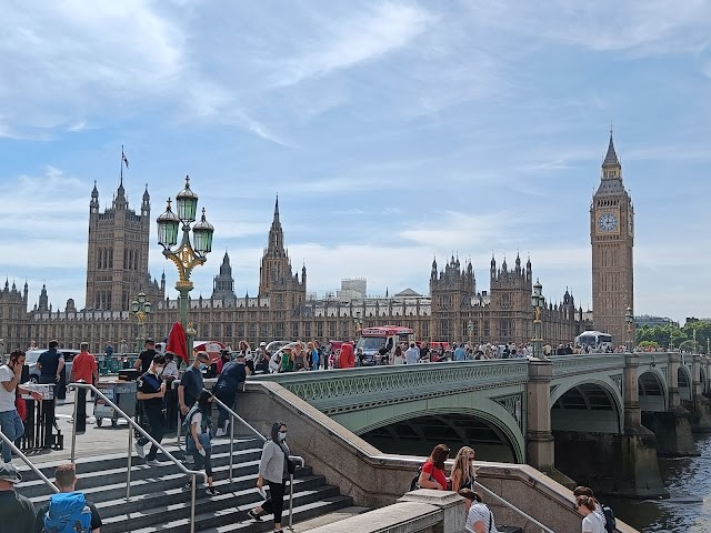 Asemalta alkoi armoton taivallus kohti keskustaa. Päivä oli armottoman kuuma. Joka paikassa muistetaan mainita, miten sateista Englannissa on, mutta me olemme kahden viikon aikana polttaneet nahkamme kahdesti ja sadetta olemme nähneet pieninä annoksina yhtä monesti. Kävellessä Hyde parkin läpi, lapset heittelivät kärrynpyöriä nurmikolla ja pysähdyimme rannalle ihastelemaan hanhia ja joutsenia. Jäätelökin maittoi. Totesimme kuumuuden ja pitkien välimatkojen olevan kohtuuttomia lapsille ja keksimme heille helpotukseksi hypätä hop hop on -hop off bussiin. Avonaisessa yläkerrassa ilmavirta vilvoitti mukavasti ja näimme taatusti enemmän, kuin jalkaisin olisimme nähneet. Kokemus oli tytöillekin uusi ja aika kului mukavasti. Ajelimme ohi Piccadillyllä ja monilla muilla “tutuilla” teillä nähden toinen toistaan hienompia maamerkkejä, patsaita, puistoja ja rakennuksia. Lopulta jalkauduimme niiden tunnetuimpien maamerkkien keskelle käyden ihmettelemässä London Eyetä, parlamenttitaloa ja tietenkin Big Beniä. Parlamenttitalo on kyllä valtava kokonaisuus, jota hienompaa rakennusta saa hakea. Täynnä uskomattomia yksityiskohtia. Mittakaavasta kertoo jotain se, että kellotaulun kuvaa zoomatessa huomasimme taulun alareunassa olevien koristekiemuroiden olevan ikkunoita!