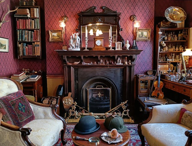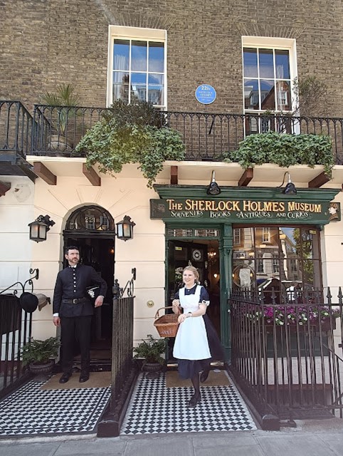 Lähdettyämme asemalta jakauduimme niin, että Rauno vei tytöt heidän himoitsemalleen KFC aterialle ja temmeltämään vieressä avautuvaan Hyde parkiin. Niina puolestaan koppasi Annlisan kantoliinaan ja käveli mapsi kourassa osoitteeseen Backerstreet 221b, joka tunnetusti oli Sherlock Holmesin kotiosoite hänen seikkailuissaan. Osoitteesta löytyy nykyisin neljässä kerroksessa oleva museo, johon on kuvattu aidoilla viktoriaanisilla esineillä salapoliisin koti, niin kuin se kirjoissa oli. Ovella lippuja oli tarkastamassa vanhaan virkapukuun sonnustautunut poliisi. Sisällä alimmassa kerroksessa sisäkkö kertoi museon ehdottomasti hienoimpien huoneiden annista. Ylemmistä kerroksista löytyi vahanukkeja, jotka esittivät Sherlockia ja hänen kohtaamiaan vastuksia. Hauskana yksityiskohtana yläkerran vinttihuoneesta löytyi viktoriaaninen toiletti. Onneksi huoneissa sai kuvata vapaasti! Unelmien täyttymys, upeasti luotu museo!