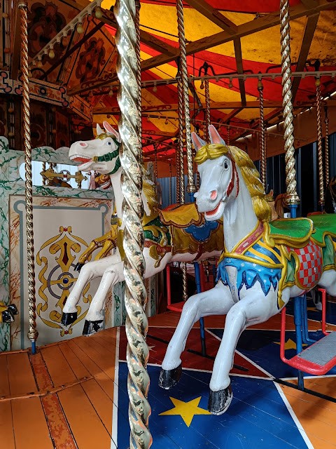 Yllätys olikin melkoinen päästessämme perille. Eikä vain tytöille. Huvipuistoalue osoittautuikin valtavassa hallissa olevaksi huvipuisto museoksi. Hetken mietimme, että museo, hmm.. kuinkahan käy kun menemme sisään, mutta päätimme kuitenkin katsastaa paikan. Ja se kannatti! Sisälle halliin kuljettiin läpi käytävän, joka oli täynnä peilisalin väärentäviä peilejä. Itse hallissa silmät levähtivät auki! Paikka oli täynnä toinen toistaan hienompia vanhoja huvipuistolaitteita ja kulkupelejä. Vanhat autot ja moottoripyörät kiiltelivät huvipuistolaitteiden seassa suorissa riveissä. Mahtuipa sekaan vanhoja traktoreita, paloautoja ja paljon muutakin. Huvipuistolaitteet toimivat kukin vuorollaan ja niiden käynnistymisestä kuulutettiin aina erikseen. Isot tytöt kävivät karuselleissa ja keikkulaudoilla, mutta olivat kaikkein eniten innoissaan vanhoista kolikkomaateista, jotka toimivat vanhoilla kolikoilla, joita sai vaihdettua kassalta. Laitteet eivät olleet rahapelejä, niin kuin ensimmäiseksi voisi olettaa, vaan niissä oli nukketeatteriesityksiä, hekottavia pellejä ja muuta meille uutta ihmeteltävää. Uskomaton paikka! Ehdottomasti käymisen arvoinen. Täällä tuli syötyä vielä ensimmäiset viralliset skonssit paikallisella paksulla kermalla. Ehdottoman herkullisia, syödään varmasti matkan aikana uudestaan.