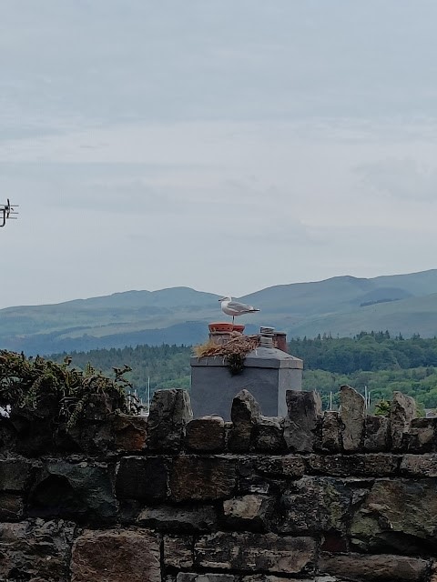 Tytöt jäivät aamiaisen jälkeen hotellille viettämään rokulipäivää ja Niina läksi Annlisan kanssa rattailla tutustumaan kylään. Llanberis (kyllä, kahdella l:llä) on pieni kylä Padarn järven vierellä. Kylässä asuu toki paikallisia, mutta siitä näki sen elävän turismista. Onneksi olimme täällä ennen heinä-elokuun sesonkia! Nyt sai kävellä kylän raittia ja järven rantaa kaikessa rauhassa nauttien luonnon äänistä. Silmä ei voinut välttää ympäröiviä vuoria, jotka eivät sinänsä olleet korkeita moneen muuhun verrattuna, mutta kasvustoltaan ja olemukseltaan niin taian omaisia, että niitä katsoessa odotti väkisinkin näkevän hobitteja. Kylän laidalla oli kapeataiteinen rautatie, josta läksi höyryllä toimiva pieni maisemajuna. Junan saapumiseen ei ollut kauan, joten Niina odotteli nähdäkseen mimmoisesta menijästä oli kyse. Järven ranta oli kokonaisuudessaan kauniisti hoidettua nurmikenttineen. Rannalla oli paljon evästelypaikkoja, yhdellä venerampilla oli joutsenpari ja sorsia lepäilemässä. Rannan takaa kohosivat vuoren rinteet. Annlisa heräsi juuri sopivasti ihmettelemään lintuja. Vierestä löytyi leikkipuisto. Kävellen kylän ympäri, eväsostokset pienestä Sparista ja pikku lepille katsomaan, mitä tytöt olivat saanut aikaisiksi silmän välttäessä.
