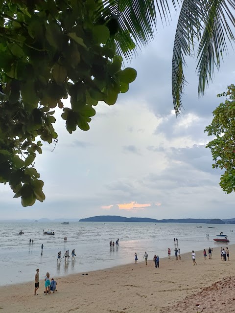 Hotelli aamiainen onneks on hieman parantunut. Vaihtelua ei vieläkään mutta laatu parempi. Mietittiin mitä jalkavaivaisena voisi tehdä. No kyllä vaikka mitä mutta päätettiin ajaltaa tuktukilla noin kymmenen kilometrin päähän klong muang rannalle. Menopaluu ja kuski odotti niin 600 baht. Sattui vielä sama kuski joka oli aikaisemmin. Ranta oli hieno ja pitkä. Miun mielestä parempi kuin aonangin mutta palveluita ja ihmisiäkin vähän. Rannan toisessa päässä oli hienoja resortteja. Korkeammankin veden aikaan pääsi saarelle jos halusi. Oltiin pari tuntia siellä. Kyseltiin kuskilta olisiko lähellä muuta kiinnostavaa muttei tiennyt. Pois tullessa ajettiin pienen norsureservaatin ohi. Voi norsu parat. Otettiin vaan muutama kuva. Iltapäivällä lähdettiin ao nangin rannalle. Syötiin koht hyvät thai ruuat. Pidettiin kiireetön ilta ja istuskeltiin rannalla. Auringonlasku oli hieno. Ruokakojuilta vielä pienet purtavat ja päivä täynnä.