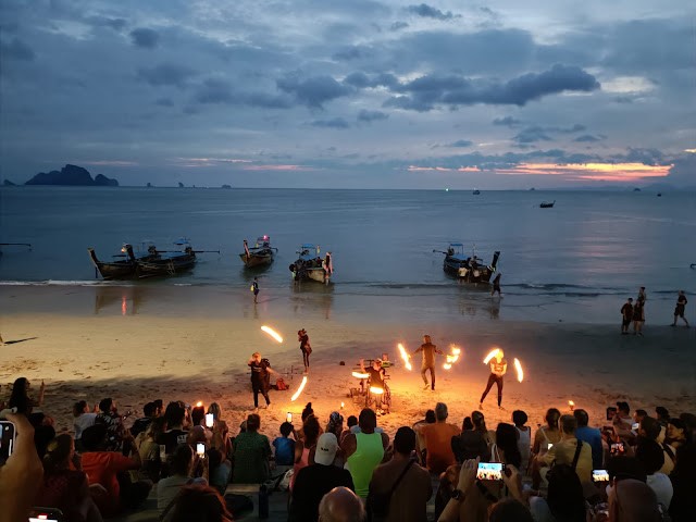 Suht tärkeä tieto jäi ilmeisesti kertomatta eli siis hotelli on aonang buri resort iltapäivällä lähdettiin kävelemään eri suuntaan kuin yleensä mikä usein kannattaa. Tiedossa toki oli suurinpiirtein mitä odottaa. Noin 500 m päässä oli ravintoloita ja suht isot night market (klo 17- auki) missä oli paikallista ruokaa, erilaista tavaraa ja tietysti rihkamaa. Ennen syömään menoa käveltiin rannalla missä silloin matalan veden aikaan pääsi todella kauas. Monenlaista rapua nähtiin. Iltaruoka syötiin äsken mainitulla torilla ja ennestään tutulla niin ikään kojulla. Mutta niissä ruoka on yleensä parasta ja halpaa. Frittikanaa ja vartaita esim 3 kpl isoa varrasta maksoi 100 baht eli noin 3 e. Jos kännyn askelmittari näytti oikein niin 23000 askelta tuli täyteen. Käytetään tuktukia myös luulisin. Illalla porukkaa oli tosi paljon liikkeellä. Joten ihmiset näyttää löytävän paikan uudestaan. Eipähän täällä iso osa paikallisista pärjäis jos turismi ei palaisi.