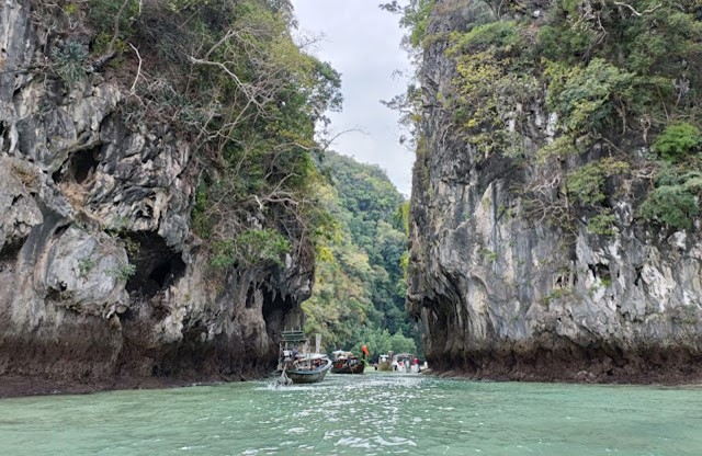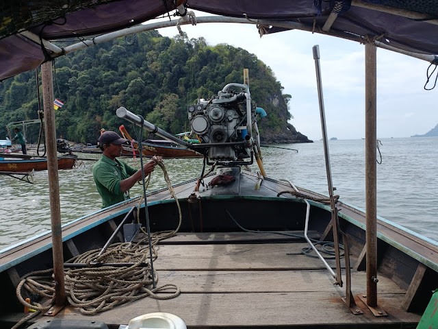 Tämän päivän ohjelma oli aikalailla epäselvää ennen kuin aamupalan jälkeen päätettiin ottaa hotellin edustalta pitkähäntävenekyyti Ko Hong saarelle. Saaria niin paljon, että vaikea valita mutta arvottiin tuo. Tunnin matka suuntaansa oli sopivan oloinen. Veneessä oli seitsemän henkilöä. Menomatka oli aallokon puolesta rauhallinen. Maisemat aikas hyviä. Kyyti maksoi 500 baht mutta kuten monesti tälläisiin ns kansallispuistoihin on keksitty sisäänpääsymaksu, niin se teki 300 lisää. Ensin vene teki lyhyen stopin saaren sisällä olevan laguunin luona jossa sai kuvailla, ihan vaikuttava Mutta ei siellä yksin tarvii olla Sitten vene hurautti ponttooneista tehtyyn isoon laituriin mistä rantauduttiin hienolle rannalle. Siellä oli yksi pieni ravintola ja kahvila. Syötiin kanacurrya mikä oli hyvää, mut jos ei halua syödä isommin niin kannattaa ostaa eväät mukaan. Ihan ookoo paikka snorklata. Monenlaista eläjää näkyi. Käveltiin lyhyt luontopolku jonka lisäksi olisi päässyt näköalapaikalle kiipeämään. Nousu näytti turhan jyrkältä. Nähtiin useita varaaneja. Kuvauksellinen paikka kaiken kaikkiaan. Tuuli voimistui jo ennen poislähtöä joten oli tiedossa pomppuinen paluumatka. Mutta ihmeen hyvin nämä veneet kulkee kovassa aallokossa. Kastuttiin kyllä hienosti Päivästä kehkeytyi pitkä joten lepille hotelliin…