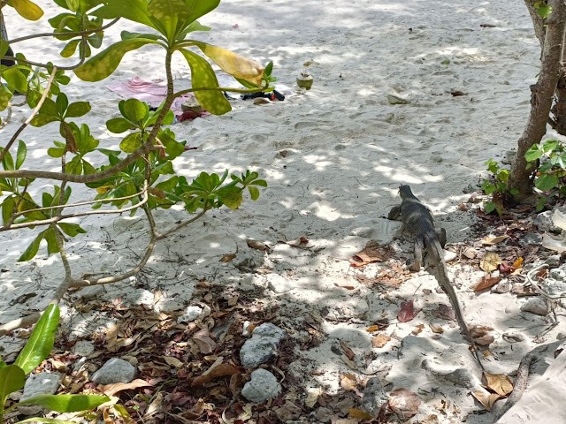 Retkeilyn jälkeen hotellilla otettiin lepiä ja lähdettiin syömään vartaita jotka oli taas namia. Tuktukilla ajettiin aonang rannalle ja suunnattiin sen ns loppupäähän mistä lähtee monkey trail niminen polku niemen takana olevalle rannalle jossa oli muutama hotelli ikäänkuin omalla rannalla. Polulla oli nousuja ja portaat aika huonossa kunnossa, muuten hyvä visiitti. Sen huomaa että monta kohtaa on rempallaan ja vaatisi laittoa. Ei korona taukona ole tehty kunnostuksia, ei varmaan ollut rahoja. Toki tunnelma on näin aidompi. Sekin on vielä uudestaan mainittava miinuksena kun mereen lasketaan pelkästään aonangin kohdalta monta eri avoviemärillistä tavaraa. Kannattaa katsoa missä kohden ui. Illan lopuksi ajeltiin mopotaksilla iltamarkkinoille syömään. Ruokana oli nauta ja kana mamosaa eli nyyttejä.