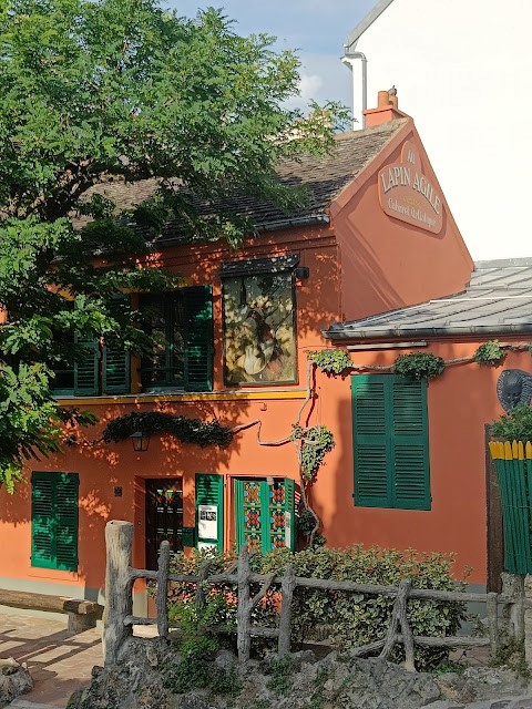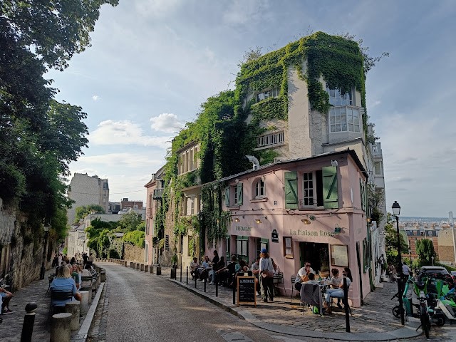 Ehdimme hyvin tilaamaan mansikkajuomamme ja ostamaan pillimukimme. Mutta taas saimme hämmästellä, kuinka turistien meri alkoi yllättäen astuessa yhdelle kujalle ja loppui aivan yhtä yllättäen muutaman korttelin päässä. Netistä bongaamamme nähtävyydet La Maison Rose- kahvila sekä keskellä kaupunkia kasvava pieni Au Lapin Agile- viinitila tulivat aivan vahingossa vastaan aloittaessamme laskeutua kukkulalta takaisin alas. Molemmat olivat kauniita ja näkemisen arvoisia rakennuksia. Alue muutoinkin olisi ollut kaunis, mutta turisteja sieltä löytyi aivan liikaa pienelle alueelle pakkautuneena. Tytötkin sanoivat “asuvansa” mieluummin asunnossamme =)
