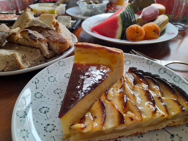 Kotimatkalla Niina piipahti vielä ostamaan yllätysiltapalan. Tapahtui nimittäin jotain ennenkuulumatonta..aikuiset olivat unohtaneet syödä! Rauno istuksi tyttöjen kanssa idyllisellä portaikolla valtavalehtisten puiden alla odotellessa, että Niina saisi valittua leipomosta mieluiset iltaeväät asunnolle. Päivä päättyi niinkuin alkoikin, syöden Ranskalaisia herkkuja (ja pelatessa tammea). Katsotaanpa onnistuuko autoilumme huomenna.