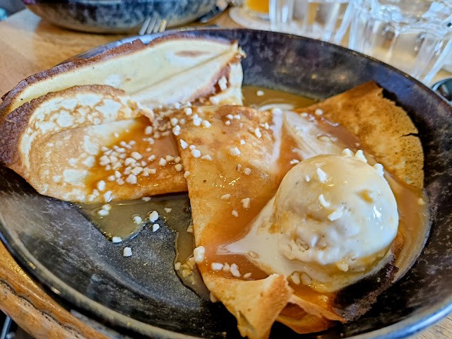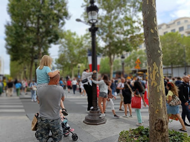 Tytöt saivat päättää päivän marssijärjestyksen. Lopputulos oli, että Rauno käytti Annlisan aamulla leikillä puistossa ja Niina pakkaili laukkuja. Disneylandin ostokset toivat lievän lisähaasteen pakkauspuuhiin, mutta kompakti lopputulos oli varsin onnistunut. Tämän jälkeen Rauno käytti Sarahin Zarassa uudemman kerran vaateostoksilla ja Niina vei toiset tytöt katselemaan Champs-Elyseen muuta tarjontaa. Kadulla oli aivan erilailla ihmisiä kuin tour päivänä. Katu tuoksui parfyymille ja ihmiset kantoivat kalliiden liikkeiden ostoskasseja aarteinaan. Päiväkahvilla päätimme maistaa vielä yhtä ranskalaista klassikkoa, crepsejä. Ensimmäinen paikka, jossa koetimme niitä tilata ei oikein kestänyt asiakaspalautetta, vaan heitti meidät pihalle..oli hyvin ranskalainen temperamentti ravintoloitsijalla. Toisessa paikassa palvelu ja tunnelma oli haluamaamme ja saimme viimein paikalliset lettumme suolaisella kinuskilla/suklaakastikkeella ja vanilja jäätelöllä.