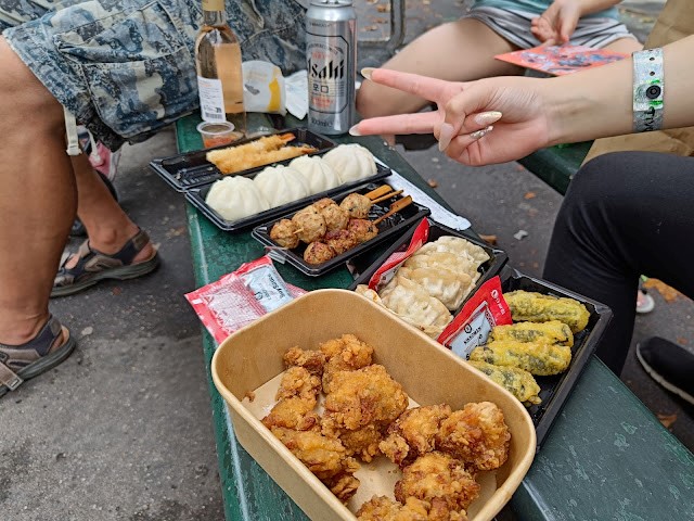 Sarah ja Savanna pääsivät shoppaamaan Zaraan, josta tarttui mukaan molemmille jotain pientä. Tämän jälkeen pyörähdimme pienessä Harry Potter putiikissa, josta ostimme suklaasammakon ja muita herkkuja. Lounaan nautimme kadun varressa puiston penkillä. Tytöt saivat burgeria. Rauno taas oli löytänyt aikuisten makuun aasialaisen kaupan, joka möi paitsi asunnolle ostamiamme japanilaisia/korealaisia nuudeleita/tabokeja, myös rakastamiamme japanilisia nyyttejä, kanapalluroita, frittikatkarapuja…paras matkaeväs aikoihin. Ihan niinkuin Japanissa! Melkein tuli tippa linssiin. Kyllä kelpasi herkutella ja nauttia tunnelmasta.
