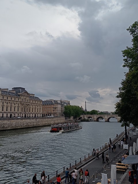 Oli mukavaa kävellä Champs-Elyseetä ja lähikatuja, kun vierellä ei ollut autoliikennettä. Loistava tuuri tämä kisa monessakin mielessä, vaikkakin vaikeutti liikkumista, kun osa metropysäkeistä oli kiinni ja turistikohteet, kuten aikomamme Louvre olivat tapahtuman vuoksi kiinni ja ihailtavissa vain ulkoa päin (oli muuten rakennuksella kokoa). Museon pyramidi jäi siis näkemättä, mutta sen sijaan nautimme italialaista gelatoa ja kuljeksimme Seinen jokirantaa ihmetellen joen leveyttä ja sitä ympäröivien rakennusten kokoa. Savanna aiheutti ensin harmaita hiuksia ja sittemmin voiton tuuletukset nirsoutensa kanssa. Gelato kahvilassa myyjä huomasi, ettei tyttö pitänyt hänelle ostetusta jäätelöstä. Tämähän ei käynyt laatuun, vaan tytön piti saada jotain mikä maistuisi. Myyjä kiikutti Savannalle monta eri maistiaista eri jäätelöistä, kunnes toi pöytään pirtelöä ja tyttö lopulta kohteliaasti huijasi pitävänsä siitä=) Siinä sai Niina pistellä ensin oman jäätelönsä ja juoda sitten salaa Savannan pirtelöä, että myyjä ei pahoittaisi mieltään. Siihen sitten iso cappuccino päälle uoooh…jami maiskis ööh.