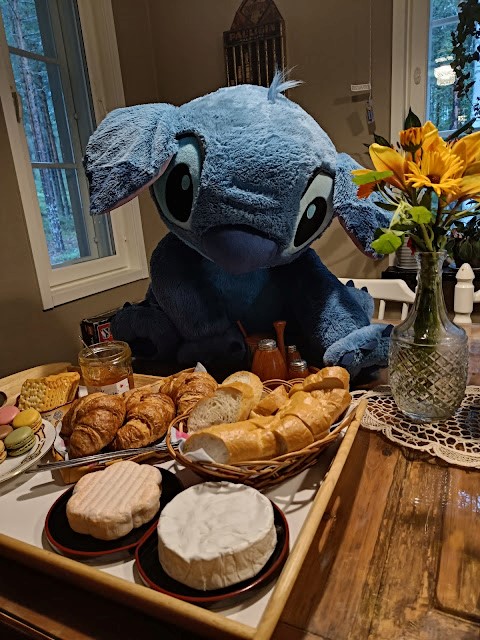 Viimeinen aamu Pariisissa. Huomenna on edessä pitkä matkustuspäivä. Tänään oli saatava aamiaiselle croisantteja! Niina ja Rauno eivät olleet saaneet niitä Pariisissa ollessaan vielä ensinkään! Niitä haettiin lähi konditoriosta. Kaupassa taas tehtiin hieman erikoisempia ostoksia. Sarahin eilen ostamaan jätti-pehmoon oli unohtunut putiikissa värip*mmi-hälytin tassua koristamaan. Se oli pakko saada irti ennen kassiin pakkaamista. Toimenpidettä varten lähikaupasta ostettiin rautasahan teriä. Asunnolla pehmo käärittiin kylpypyyhkeisiin ja tassu vielä erikseen muovipussiin, minkä jälkeen päästiin suorittamaan operaatio värihälyn poisto=) Operaatio onnistui ja potilas selvisi vammoitta, joten päivä oli pelastettu! Kuvassa matkalaukun täyttänyt potilas on jo onnellisesti kotona Suomessa.