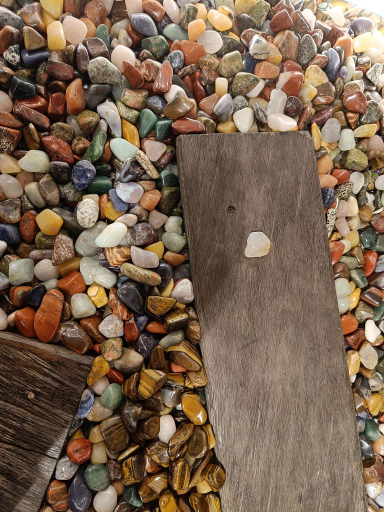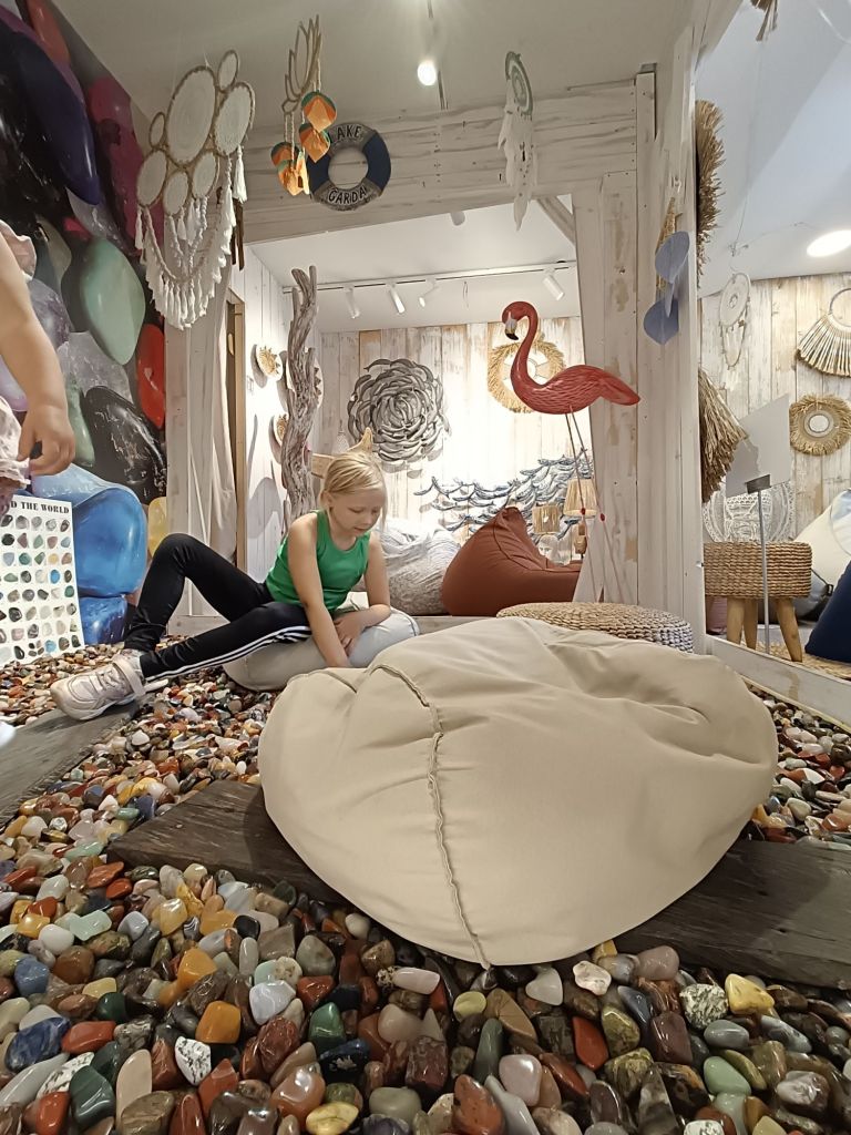 Näköalapaikalta löysimme oikotien alas portaiden muodossa. Annlisan rattaat kantoon ja tyttö porrasjumpalle. Alas päästyämme olimmekin heti kylän ytimessä ja intouduimme eksymään muutamaan pieneen putiikkiin, joista yhdessä oli kiva rauhoittumispaikka, jossa sai tutustua kiviin ja valita sieltä “ostoskulhoonsa” itseään eniten puhuttelevat kaikessa rauhassa. Sarah ja Savanna kävivät ostamassa ensimmäiset gelatonsa, jotka olivat niin hyviä, ettei niistä liiennyt äitille maistaa kun puoli lusikallista.