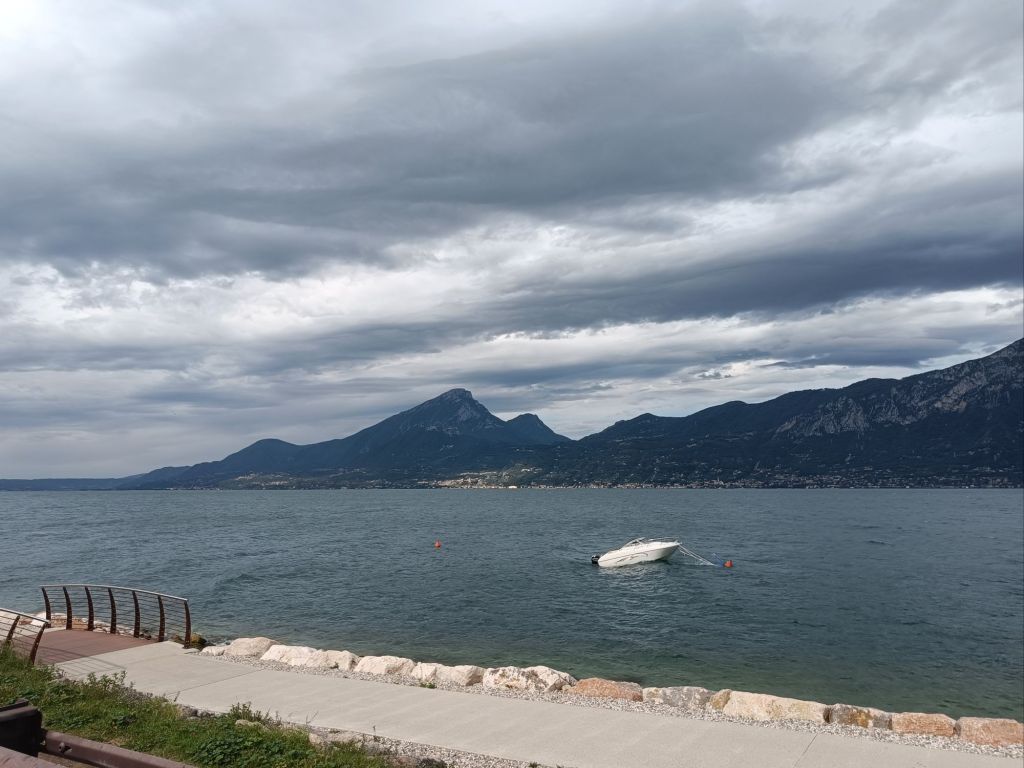 Tänään oli tyttöjen päivä. Tämä tarkoitti sitä, että auton keula käännettiin aamiaisen jälkeen kohti etelää ja Gardalandia. Gardaland on suuri huvipuisto, jota tytöt olivat odottaneet kovasti jo heti matkakohteen valinnasta asti. Matkasimme järven rantaa maisemia ihaillen. Ja kyllä niitä keskesikin ihailla…ruuhka oli riittävä ja keskinopeus n.40km/h. Alueen pahimman sesongin sanottiin olleen jo ohi, mutta ihmetellessämme saksalaisten rekisterikilpien paljoutta liikenteessä, meille selvisi järven olevan saksalaisten viikonloppu riviera…eikä nyt ollut edes viikonloppu. Upeaa oli järveä, kyliä ja vuoristoa ihailla yhtä kaikki. Vuoristo oli komeimmillaan majapaikkamme luona järven pohjoisosassa ja laski hiljakseen etelää kohti ajaessa.