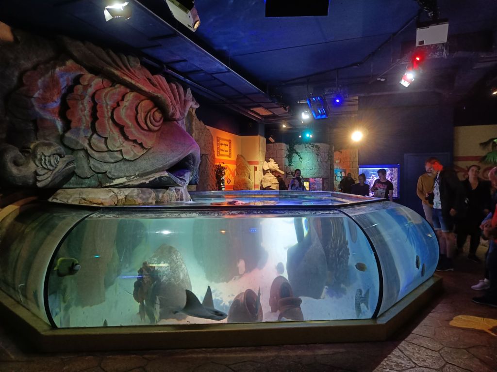 Hyvästeltyämme puiston meillä oli enää tunti aikaa kiertää Sealife aquarim. Onneksemme tunti riitti mainiosti paikan kalojen ihailuun. Rakennuksen ulkoasuun oli panostettu paljon, mutta lajimäätältään aquarium oli pienimpiä, joissa olemme käyneet. Tosin paikka oli ensimmäinen Annlisalle, joka nautti erityisesti merileijonien kisailusta vedessä. Lapsia ajatellen paikka oli kiva. Merirosvoteemainen julkisivu houkutti seikkailuun,joka jatkui vielä sisällä erilaisten tehtävien muodossa.