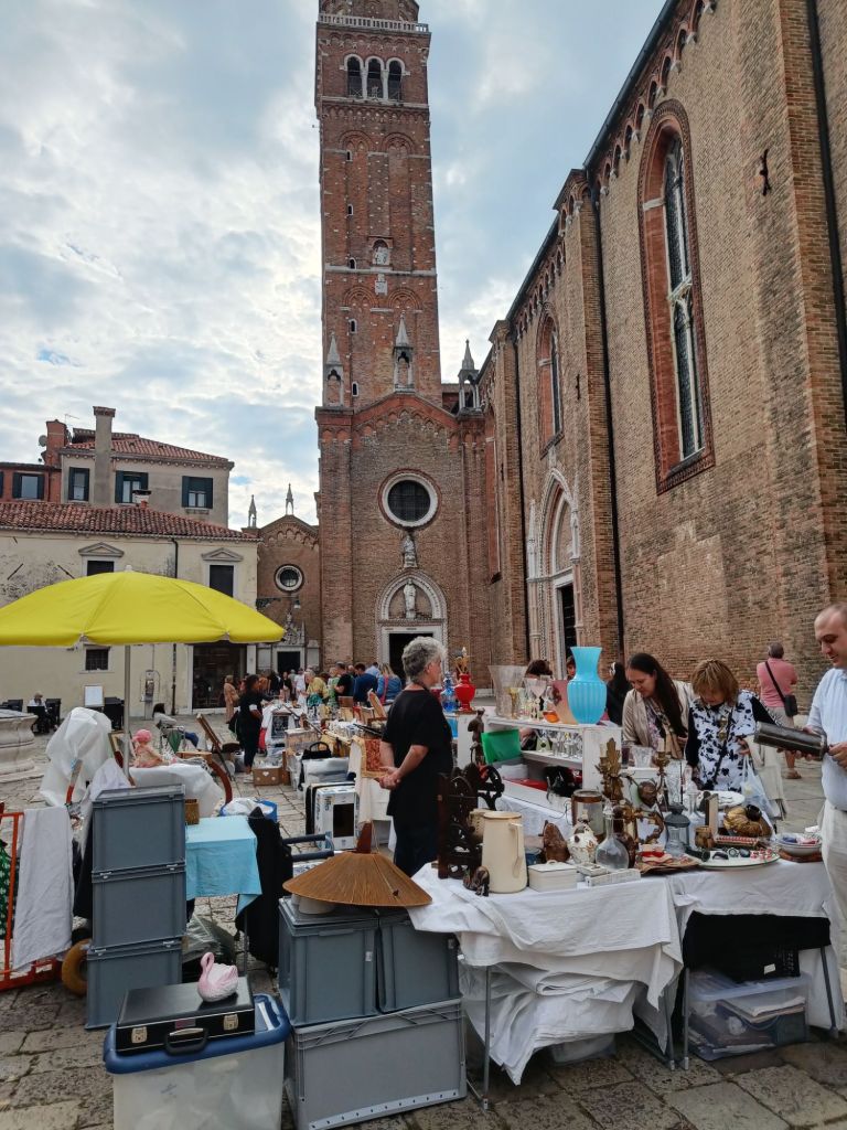 Kaunis saari oli mielestämme pilattu turistikrääsäkojuilla, joilta oli vaikea erottaa kauniita rakennuksia ja paikan aitoa henkeä. Savanna löysi yhdestä lasiliikkeestä kuitenkin itselleen korvikset. Taidelasihan on paikan erikoisuus, joten kiva muisto jää paikasta. Niinakin shoppasi taidetta. Erään katedraalin aukiolla oli kirppismyyjiä, joiden aarteista löytyi vintage taulu, joka sai meiltä nyt uuden kodin.