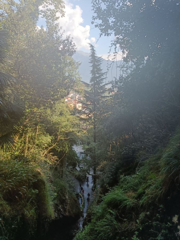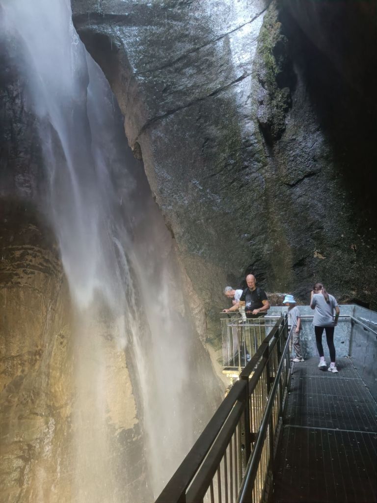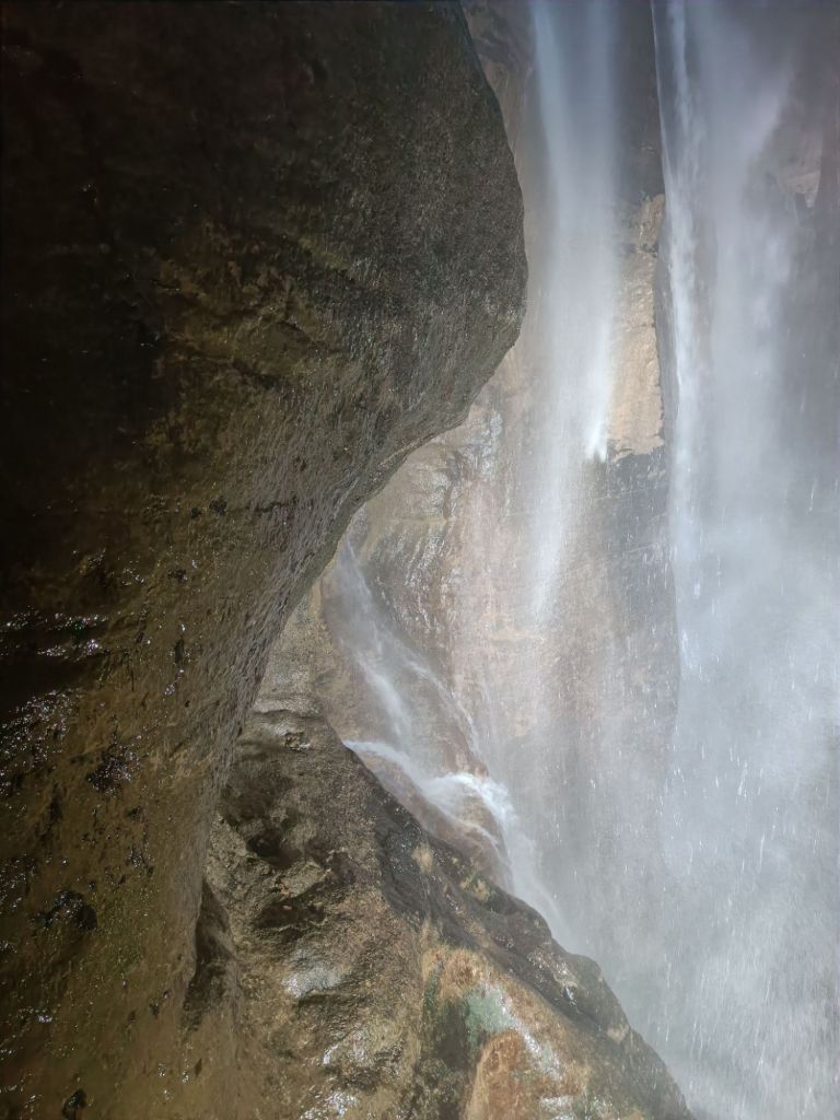 Vesiputouspaikka osoittautui ensinnäkin kasvitieteelliseksi puutarhaksi, jonka rinteitä kiertäviä portaikkoja reunustivat toinen toistaan kauniimmat kasvit. Toiseksi paikka osoittautui pelastukseksi paahteelta. Vesiputoukset olivat nimittäin luolassa kallion sisällä, missä ne pärskyivät viilentävää vettä katsojiensa päälle. Upea kokemus olla noin lähellä isoa vesiputousta ja vielä kallion sisällä.