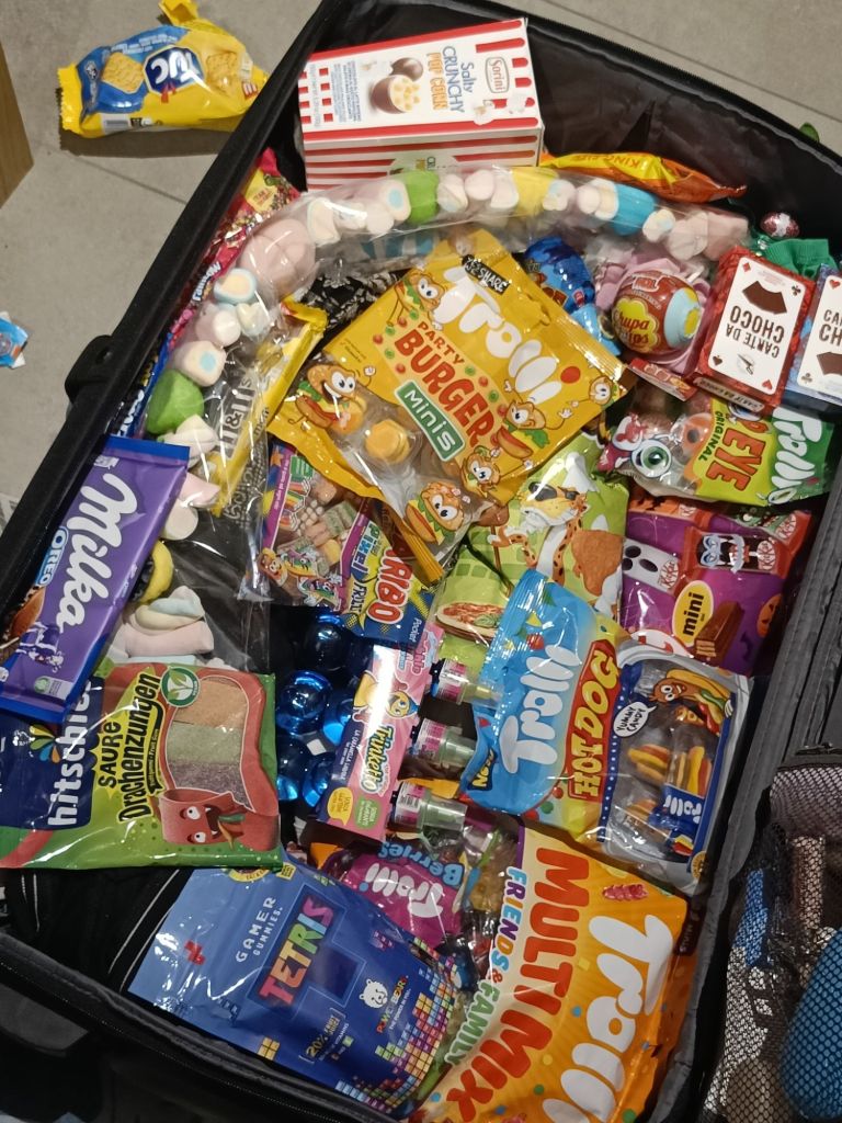 Kotimatkalla ajelimme supermarkettiin astamaan iltapalaa…homma lähti vähän lapasesta jokaisen valitessa omia herkkujaan ja lopputulos oli kaksi ostoskassillista herkkuja hotellihuoneeseen, jossa ei ollut jääkaappia…mutta kerrankos sitä syö napansa täyteen italialaista mozzarellaa ja pestoa ja kinkkua ja aprikooseja ja ….nam!